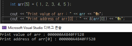 1. 선언한 배열의 이름은 배열의 첫번째 주소가 된다.