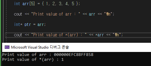 2. 배열의 이름은 포인터 타입이 되며 포인터 처럼 사용할 수 있다.