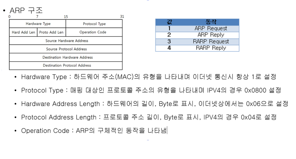 R: IP주소에 맞는 MAC 주소를 테이블에 보유