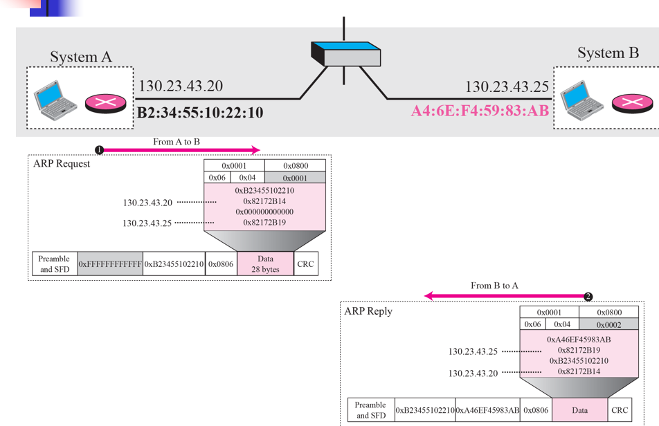 System A가 System B(141.23.56.23)의 MAC주소를 알아내고 싶다.
