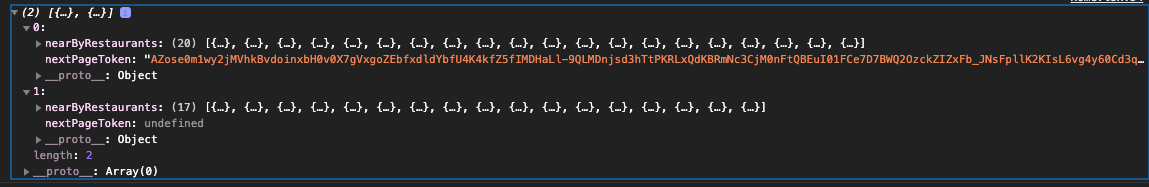 처음에 시도한 방법은 빈 배열을 만들고 data.pages 배열을 순환하면서 nearByRestaurants의 내용을 빈배열에 복사하는 방법을 생각해봤다.