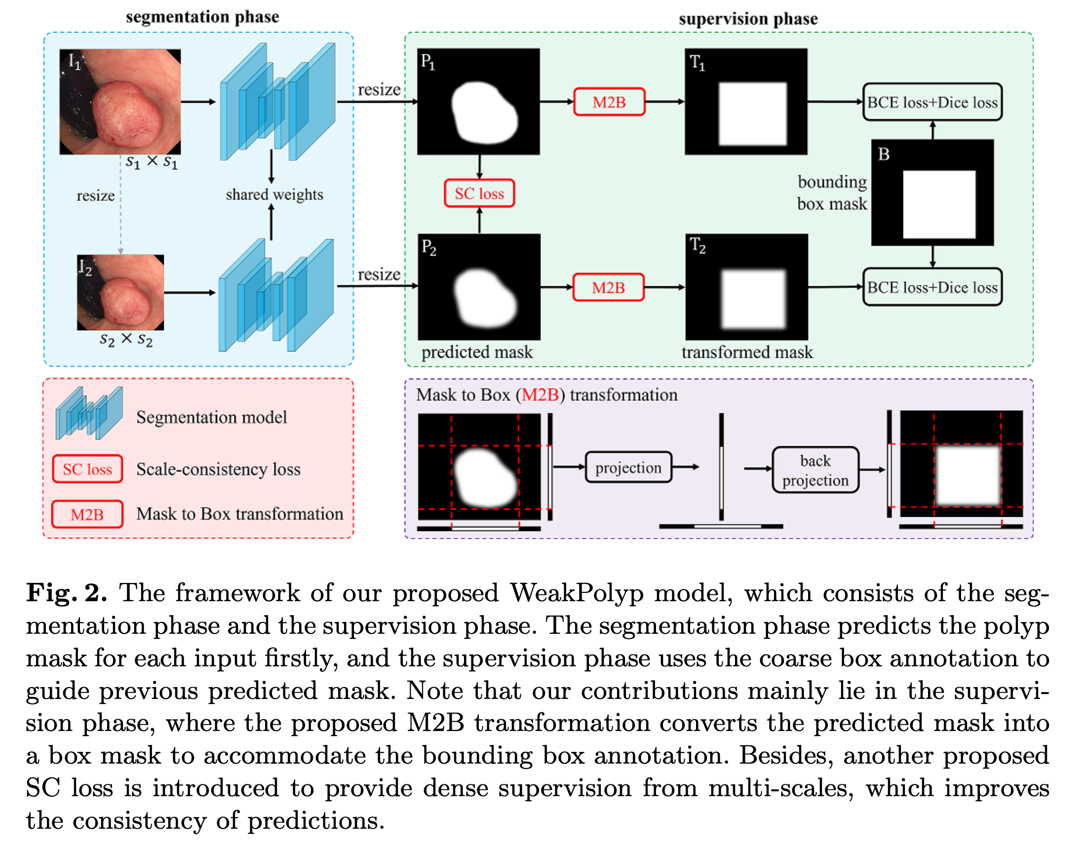 Mask-To-Box(M2B) 변환과 Scale Consistency(SC) Loss를 사용한다.