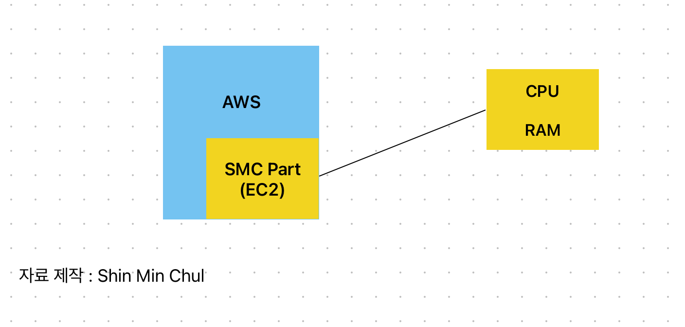 AWS 에서 CPU 와 RAM 기능을 일정부분 사용 가능하도록 독립된 하나의 가상 컴퓨터 공간을 만들어서 우리에게 제공한다. 해당 동작에서는 어떠한 환경이 갖추어지지 않은 상태로, OS도 결정되지 않았다. 그저 하드웨어의 CPU,RAM 의 제공만 이루어진 상태이다.
