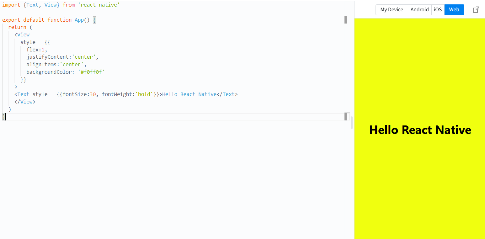 <Text style = {{fontSize:30, fontWeight:'bold'}}>Hello React Native</Text>