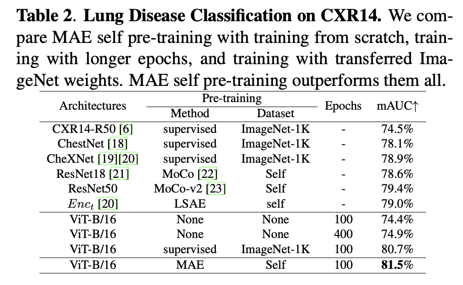 ViT scratch (100 epoch): 74.4% mAUC.
