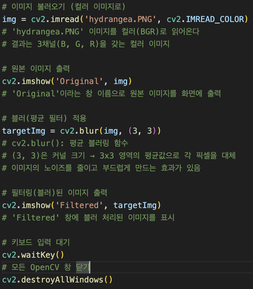 cv2.GaussianBlur()는 노이즈 제거와 함께 부드러운 흐림 효과를 제공합니다.