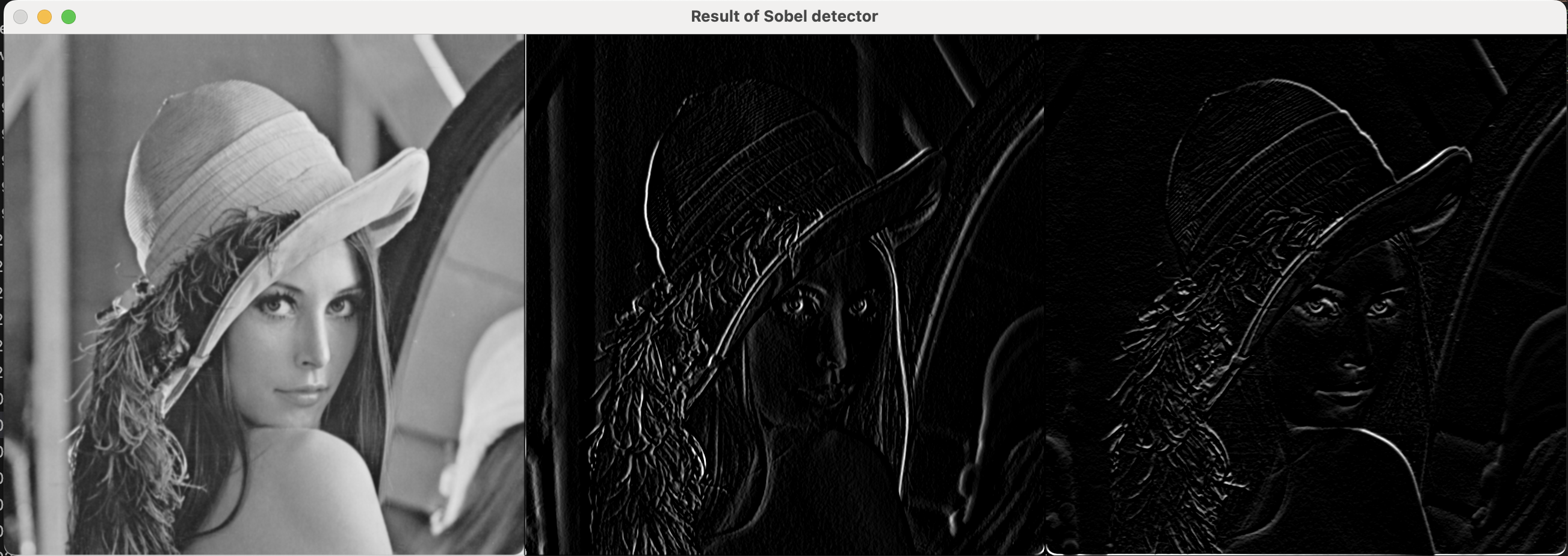np.hstack()으로 원본, X 에지, Y 에지를 한 화면에 비교 가능하게 나열합니다.