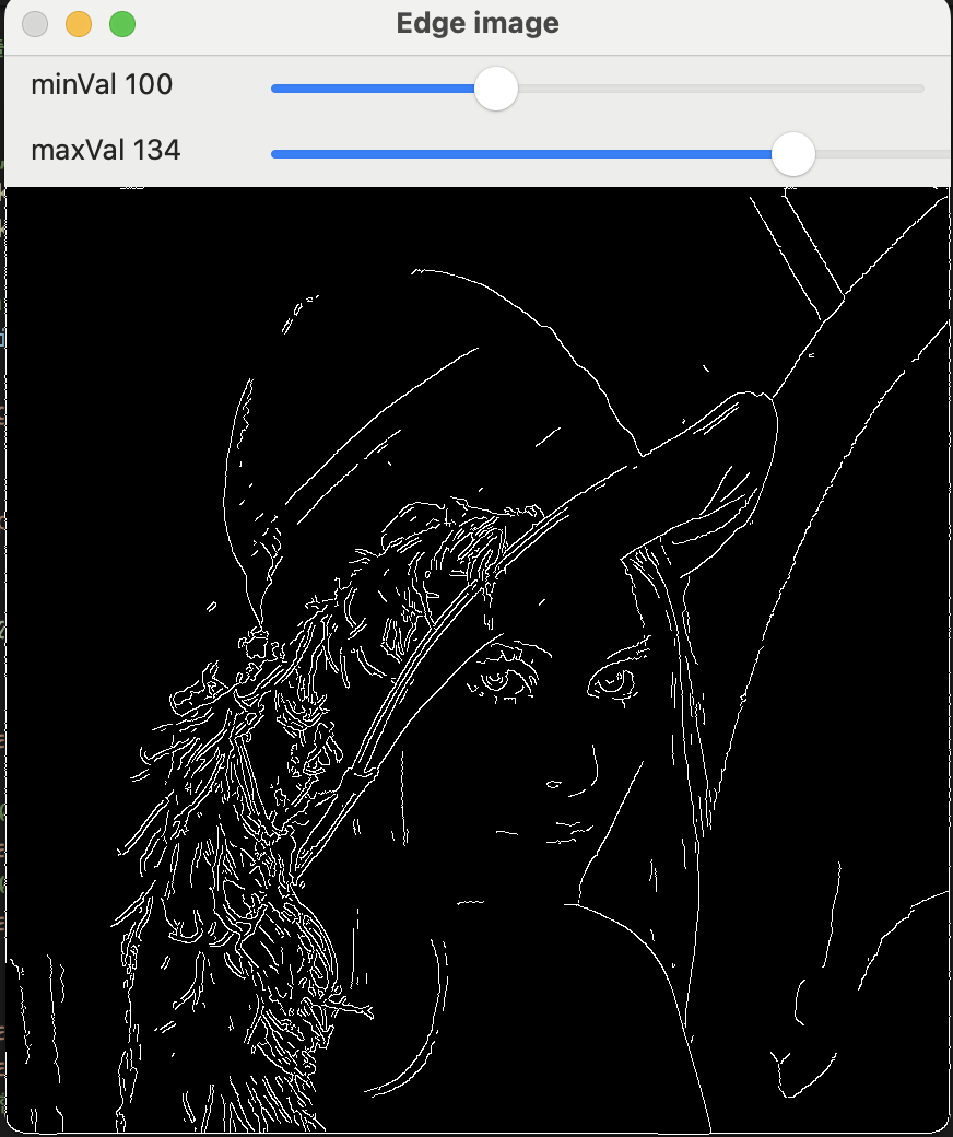 이 코드는 실시간으로 임계값을 조정하면서 Canny 결과를 확인할 수 있는 인터랙티브 도구입니다.
