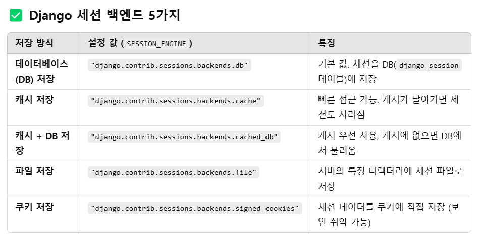 request.session["username"] = "DjangoUser"  # 세션값 저장
