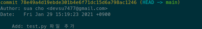 다시 git status로 확인해보면 test.py의 상태가 변경된 것을 볼 수 있다. 이제 commit할 준비가 된 것이다!