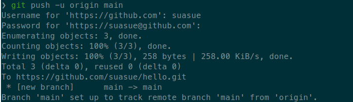 지금까지 한 add와 commit은 모두 내 컴퓨터(로컬 저장소)에서 이루어진 활동이다! 아까 연결시켜 둔 원격 저장소로 push를 해보자.