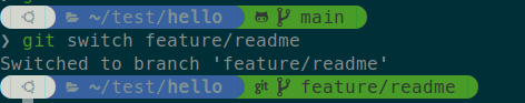 git switch로 main branch에서 feature/readme branch로 이동한다.