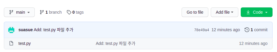 내 깃허브 저장소에서 test.py 파일을 확인할 수 있다