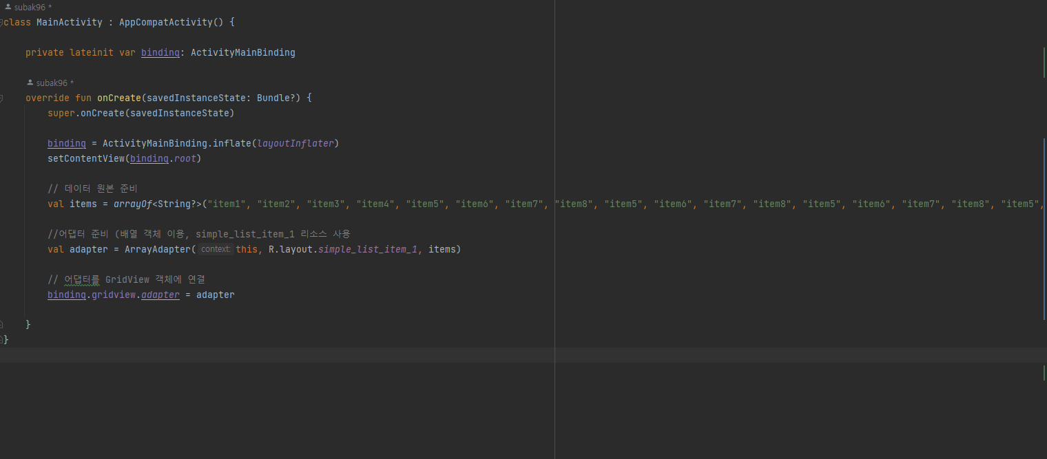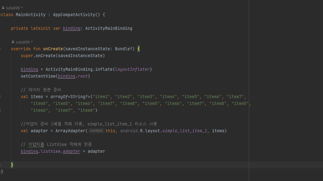 만일 ActivityMainBinding이 부분이 에러가 난다면 뷰바인딩이 되지 않은것이니 설정해주면 해결될 것이다.
