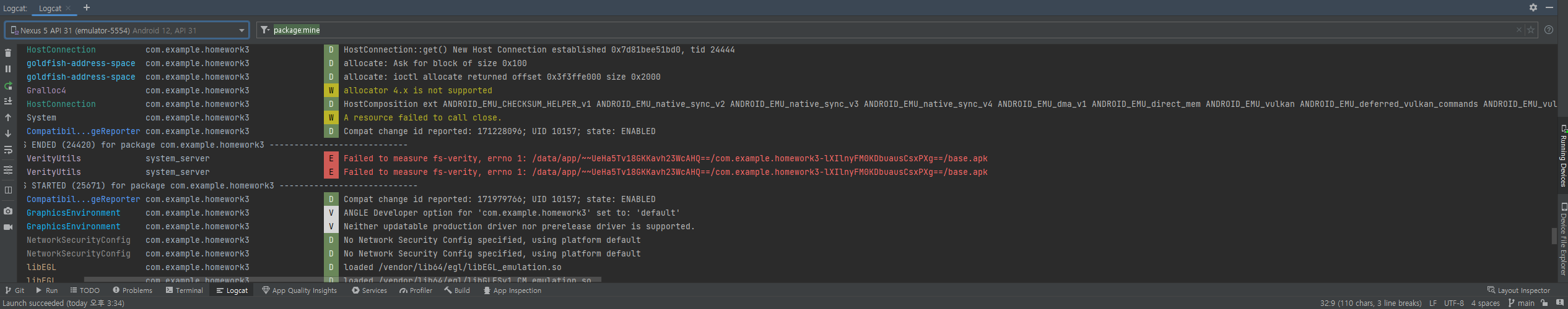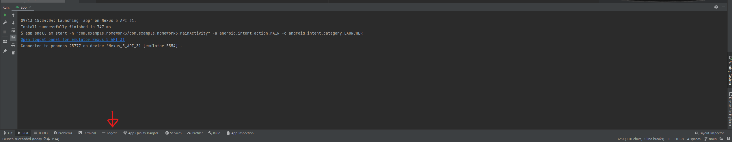 이럴때는 Logcat 을 사용해서 어디서 에러가나는지 찾아야한다. 안드로이드 스튜디오를 기준으로 설명하자면