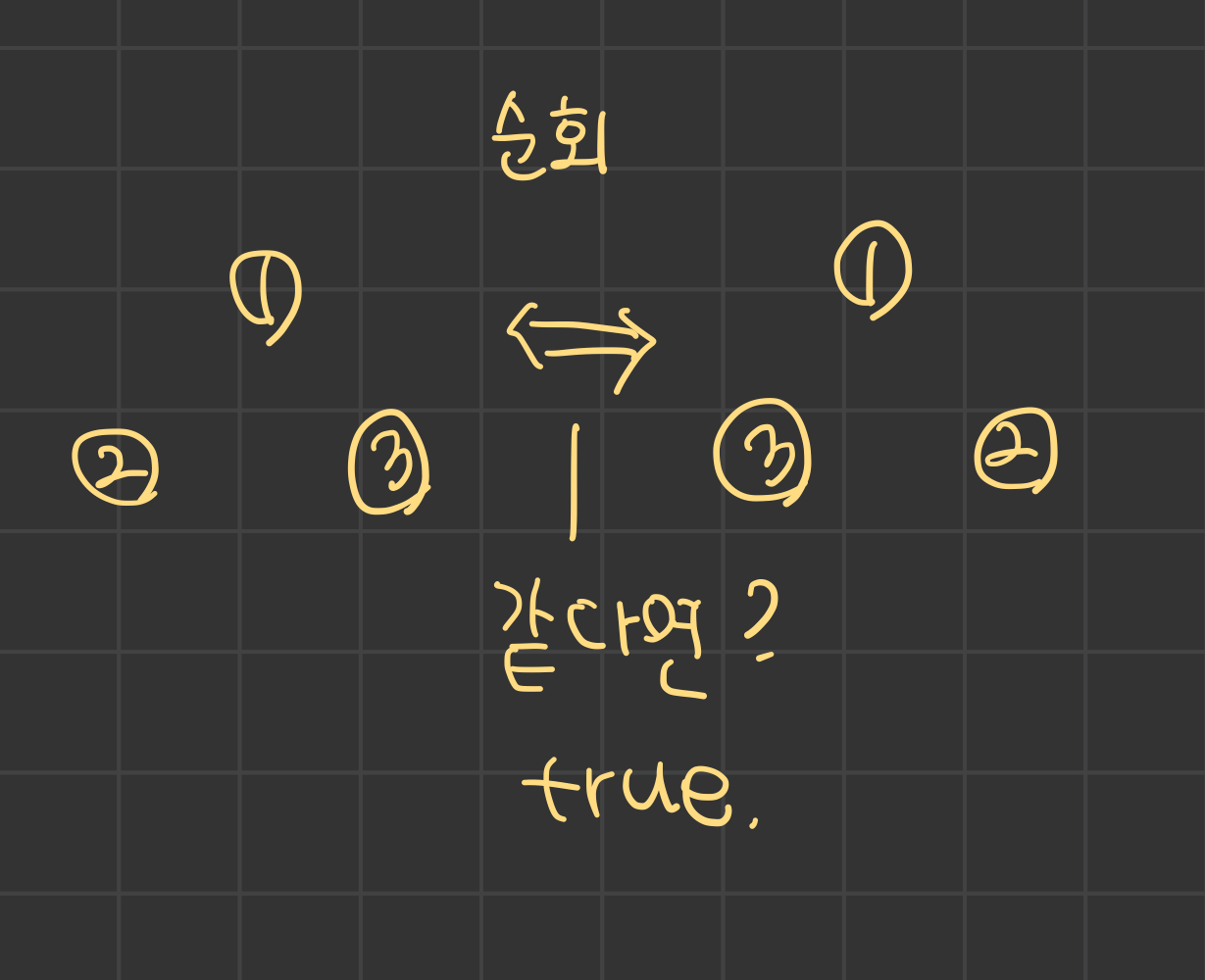 if(leftTraverse(root).equals(rightTraverse(root))) return true;