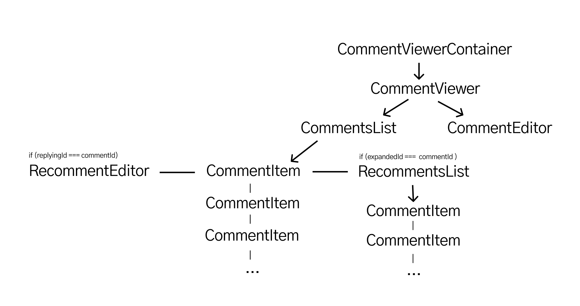 따라서 기존의 state에서의 recomments : [] 를 recomments : {} 의 객체로 변경하였고, key를 parentId로, value를 해당 parentId를 갖는 대댓글 리스트로 설정하였다.