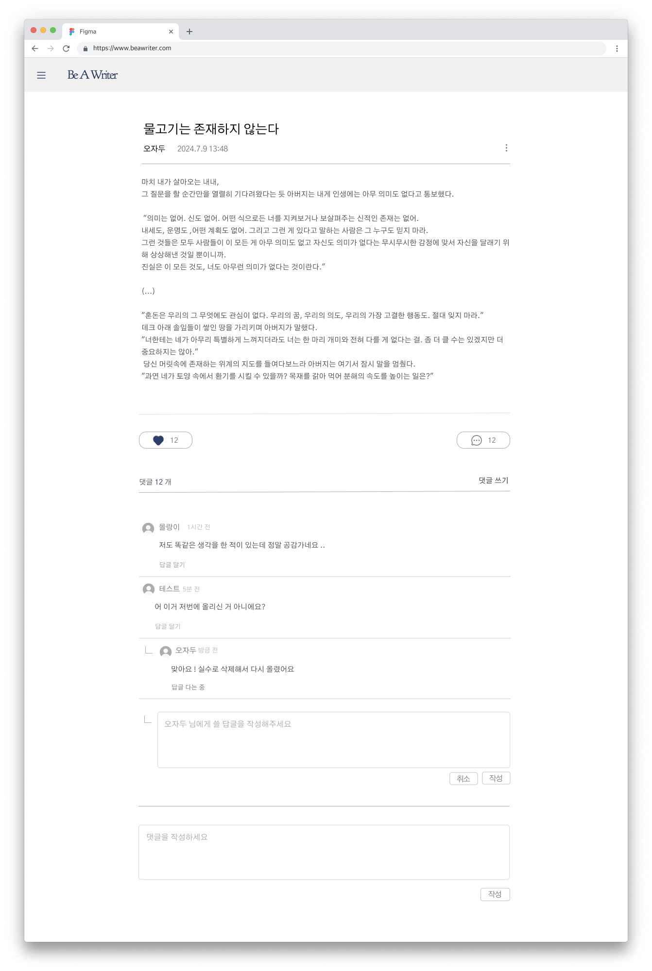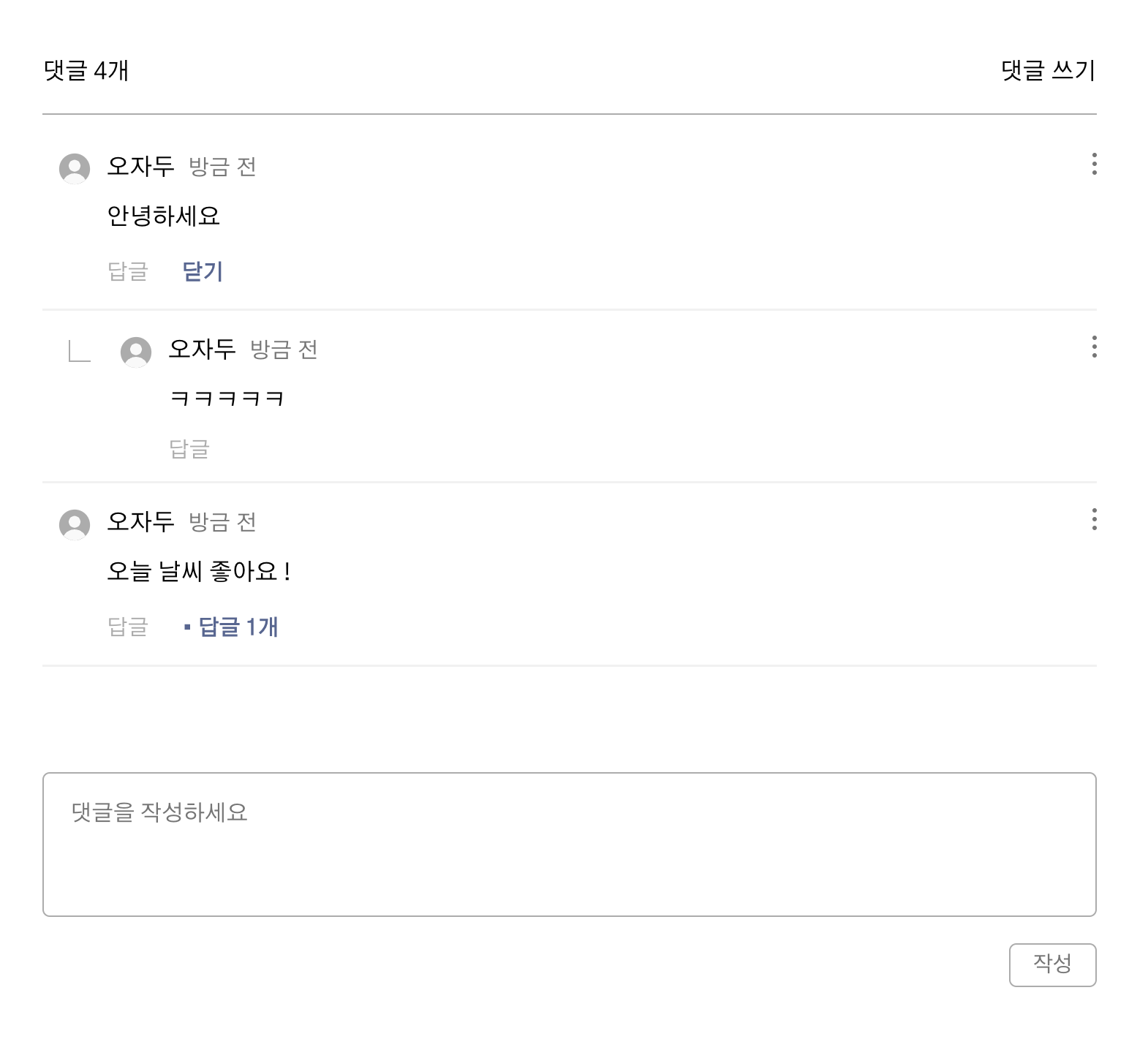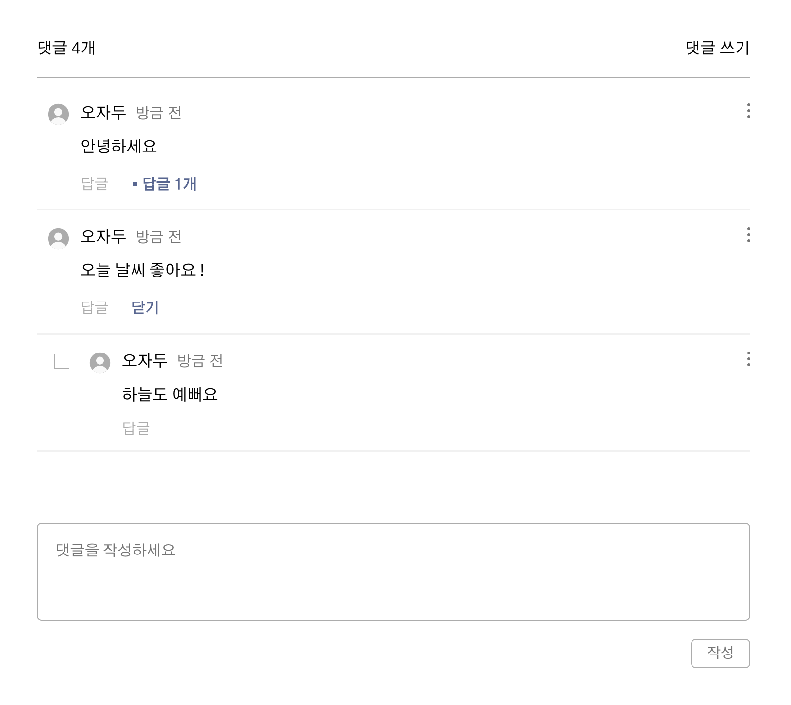 좋아요 기능은 구현 전이라서 댓글 뷰만 구현했다