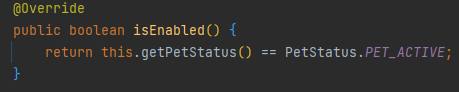 petDetailsService 에 계정 활성화 여부 리턴에 로직 추가하여 PET_ACTIVE가 아니면 false