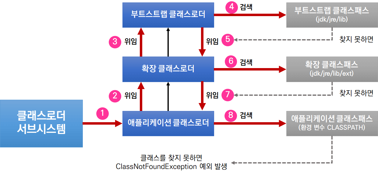 9. 만약 클래스를 찾지 못하면 런타임 예외인 java.lang.ClassNotFountException을 발생시킨다.