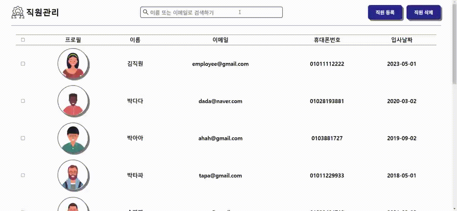 직원 이름과 이메일로 검색