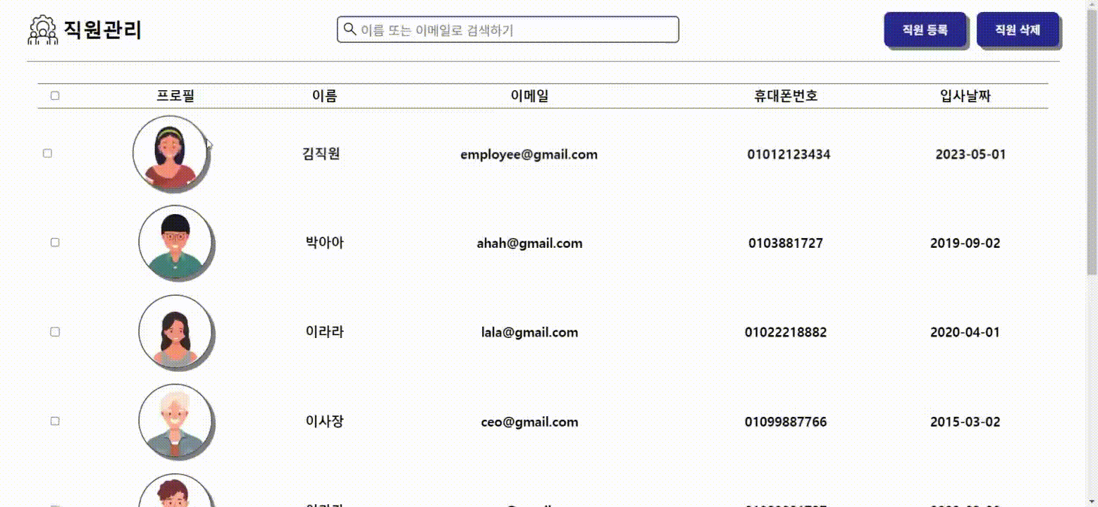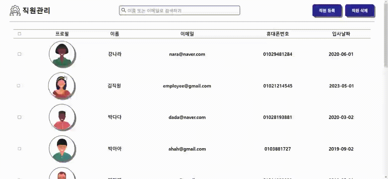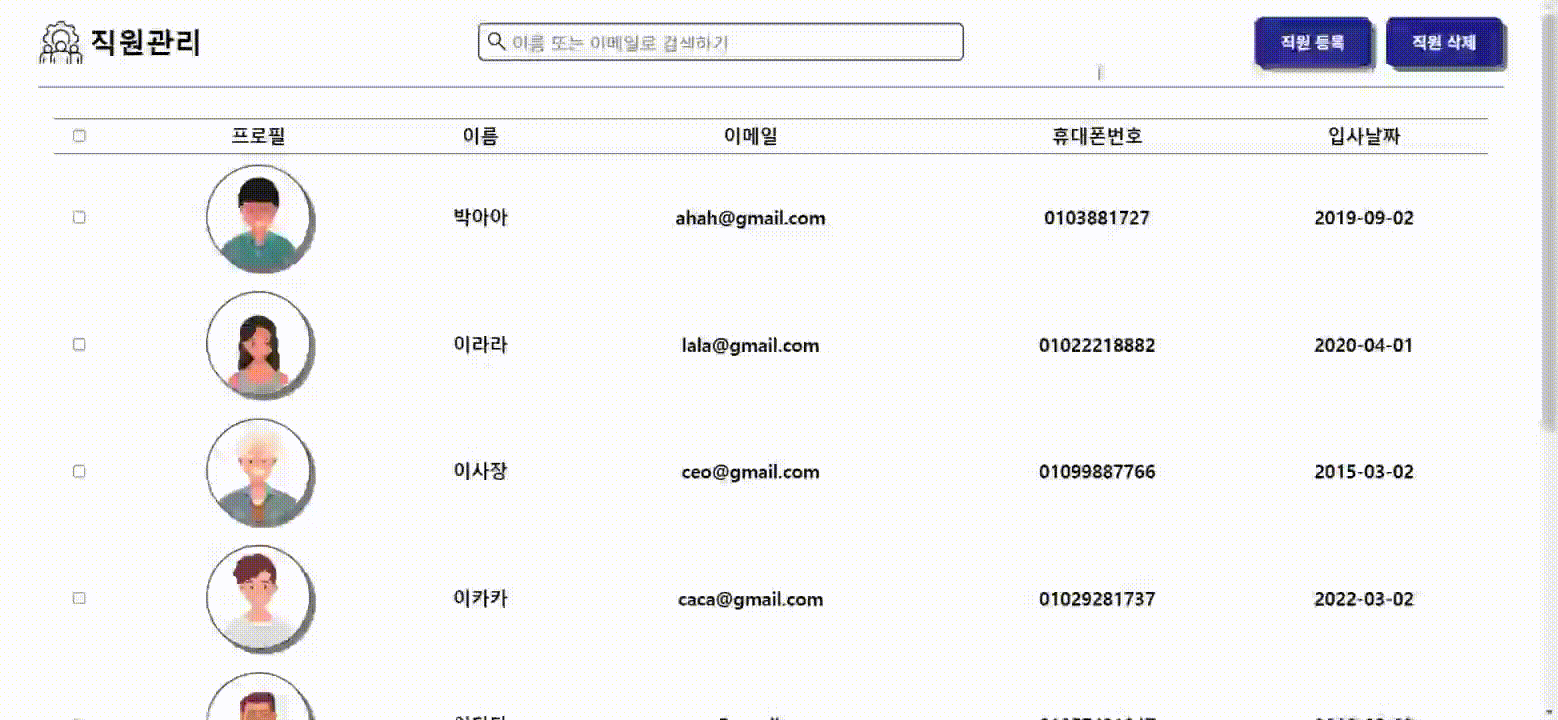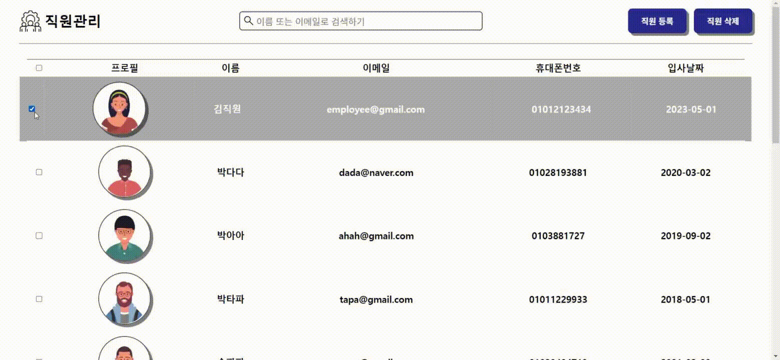 여러 직원 삭제