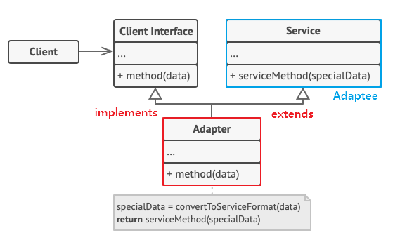 Service adaptee; // composition으로 Service 객체를 클래스 필드로
