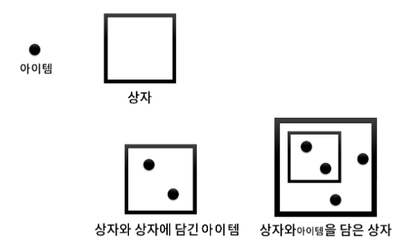 복합 객체와 단일 객체를 상자와 아이템으로 비유해보자.