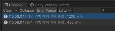 Debug.Log(bag.getName() + "의 아이템 총합 : " + result + " 골드");