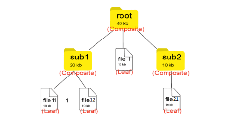 폴더 안에는 파일이 있을 수 있고 폴더도 들어있을 수 있다. 이를 복합적으로 담을 수 있다 해서 Composite 객체라고 불린다. 반면 파일은 단일 객체이기 때문에 이를 Leaf 객체라고 불린다. 즉, Leaf는 자식이 없다.