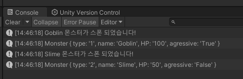 Debug.Log($"{monster.monsterName} 몬스터가 스폰 되었습니다!");