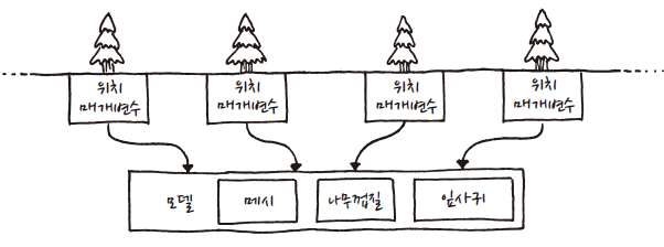 // 2. 재사용한 나무 모델 객체와 변화하는 속성인 좌표값으로 나무 생성