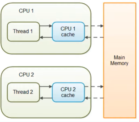 volatile? 스레드를 여러 개 사용할 경우, 성능을 위해서 각 스레드들은 변수를 메인 메모리(RAM)으로부터 가져오는 것이 아니라 캐시(Cache) 메모리에서 가져오게 된다. 문제는 비동기로 변수 값을 캐시에 저장하다가, 각 스레드마다 할당되어있는 캐시 메모리의 변수 값이 일치하지 않을 수 있다는 점이다. 그래서volatile키워드를 통해 이 변수는 캐시에서 읽지 말고 메인 메모리에서 직접 읽어오도록 지정해주는 것이다.
