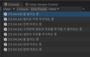 Debug.Log("고객한테 설탕과 우유를 추가할 지 물어보는 중");