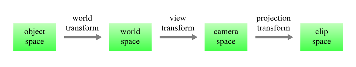 기본적으로 도형들은 자신만의 좌표계인 Local Space의 좌표를 가지는데, 모든 물체들이 하나의 월드에 위치하도록 Local Space에서 World Space로 변환하고, 실제 플레이어가 바라보는 카메라가 중심이 되는 공간인 View Space(Camera Space)로 변환해준다.