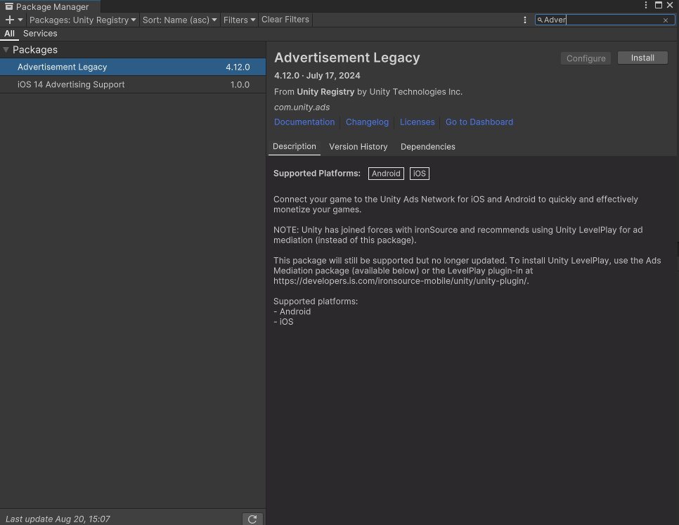 if (!Advertisement.isInitialized && Advertisement.isSupported)