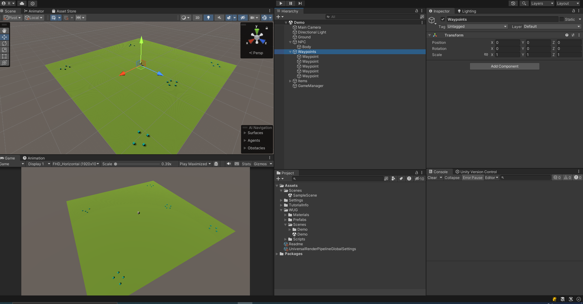간단한 데모 씬을 열어보자.