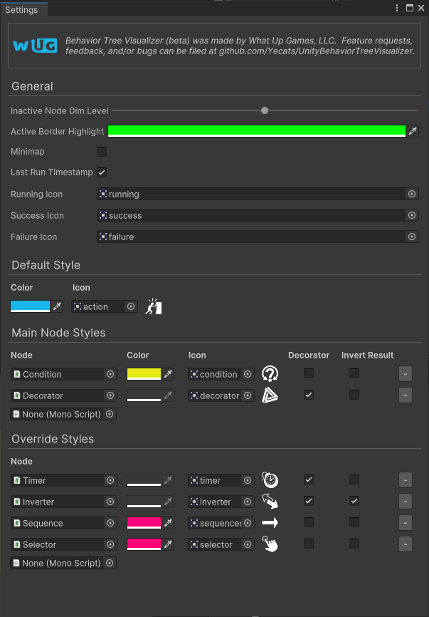 What Up Games > Behavior Tree Visualizer > Settings