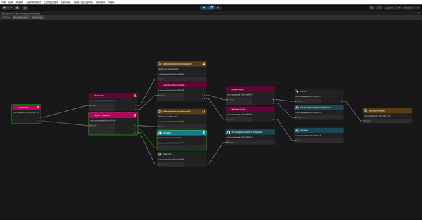 행동 트리 시각화 도구(Behavior Tree Visualizer, BTV)는 씬에서 활성화 된 행동 트리를 스캔하도록 설계되어 있고, 모든 트리를 드롭다운용 토글로 그룹화 해준다. 가장 먼저 Node Status 또는 StatusReason이 변경되었을 때 BVT에 알리도록 노드 스크립트를 업데이트 해주자.