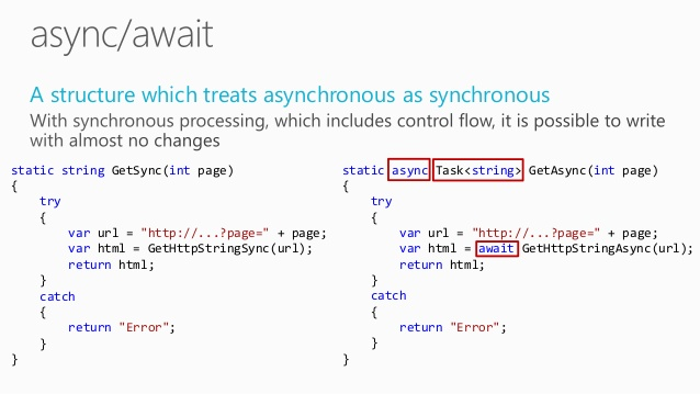 async는 비동기식의 줄임말로 메서드 앞에 async라고 지정해주면 비동기 함수로 만들어 줄 수 있다. 그 함수 내부에는 await이 반드시 있어야 하는데 await은 작업을 기다린다는 의미로 await 뒤에 따라오는 함수나 코드가 끝날 때까지 그 시점에서 정지된다.