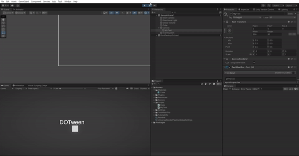 tmp_text.DOText("DOTween Example", 2, true, ScrambleMode.All).SetDelay(2);