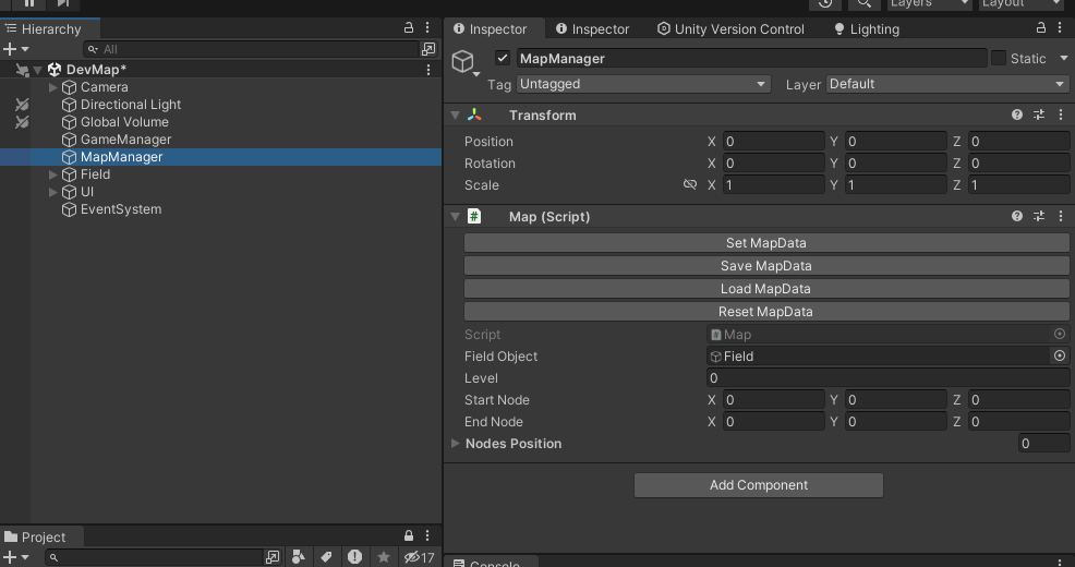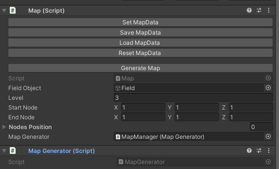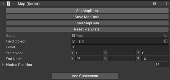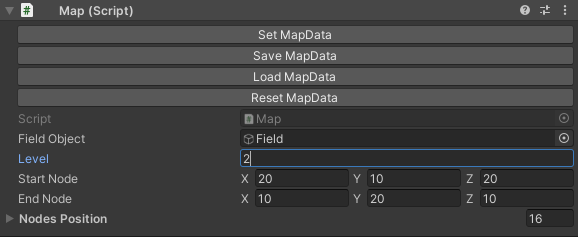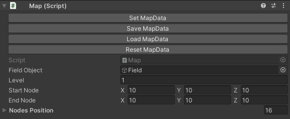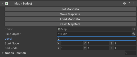 일단 Field의 자식 오브젝트로 있는 Node를 모두 날려주었다. 이제 노드를 생성해보자. 먼저 인스펙터를 아래와 같이 바꿔준다.