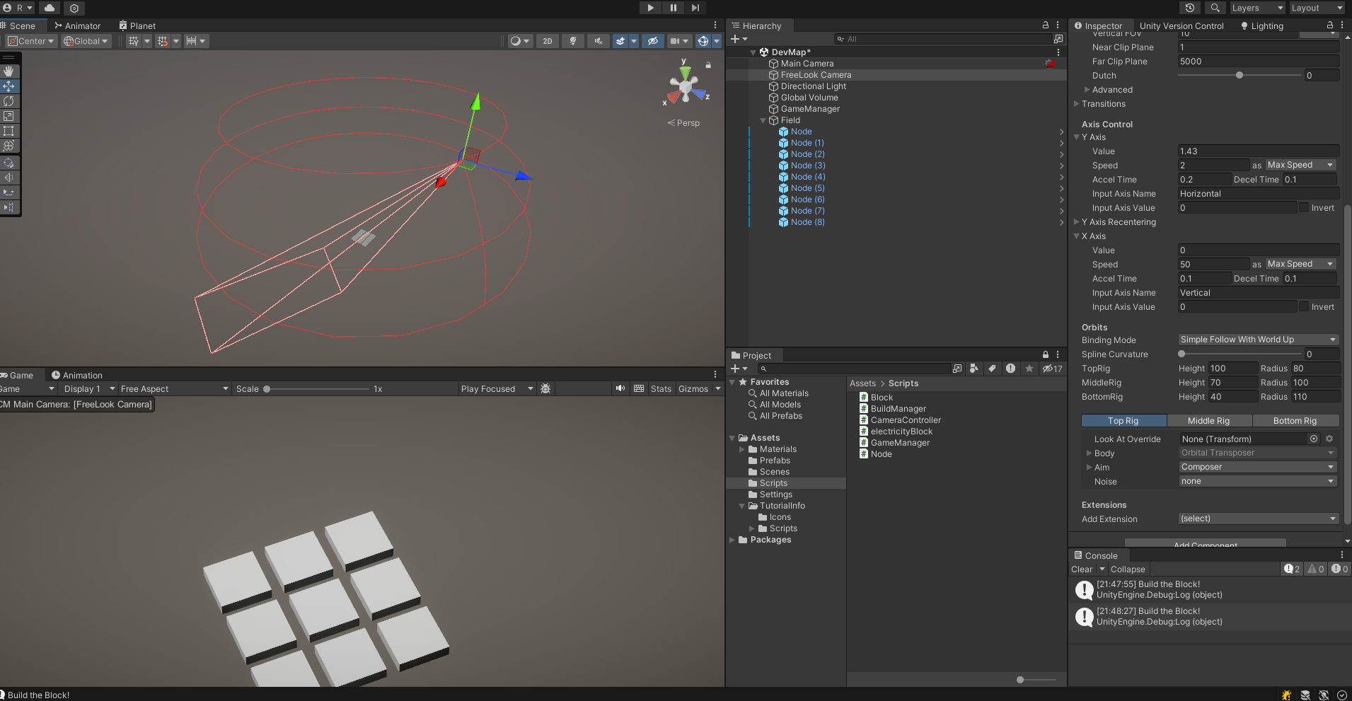 FreeLook Camera의 기본적인 사용법은 아래 유튜브 영상을 주로 참고했다.