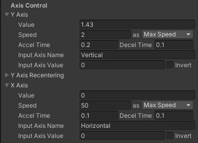 키보드로 제어해주기 위해서 Axis Control의 Input Axis Name을 아래와 같이 "Vertical", "Horizontal"로 바꾸어주었다.