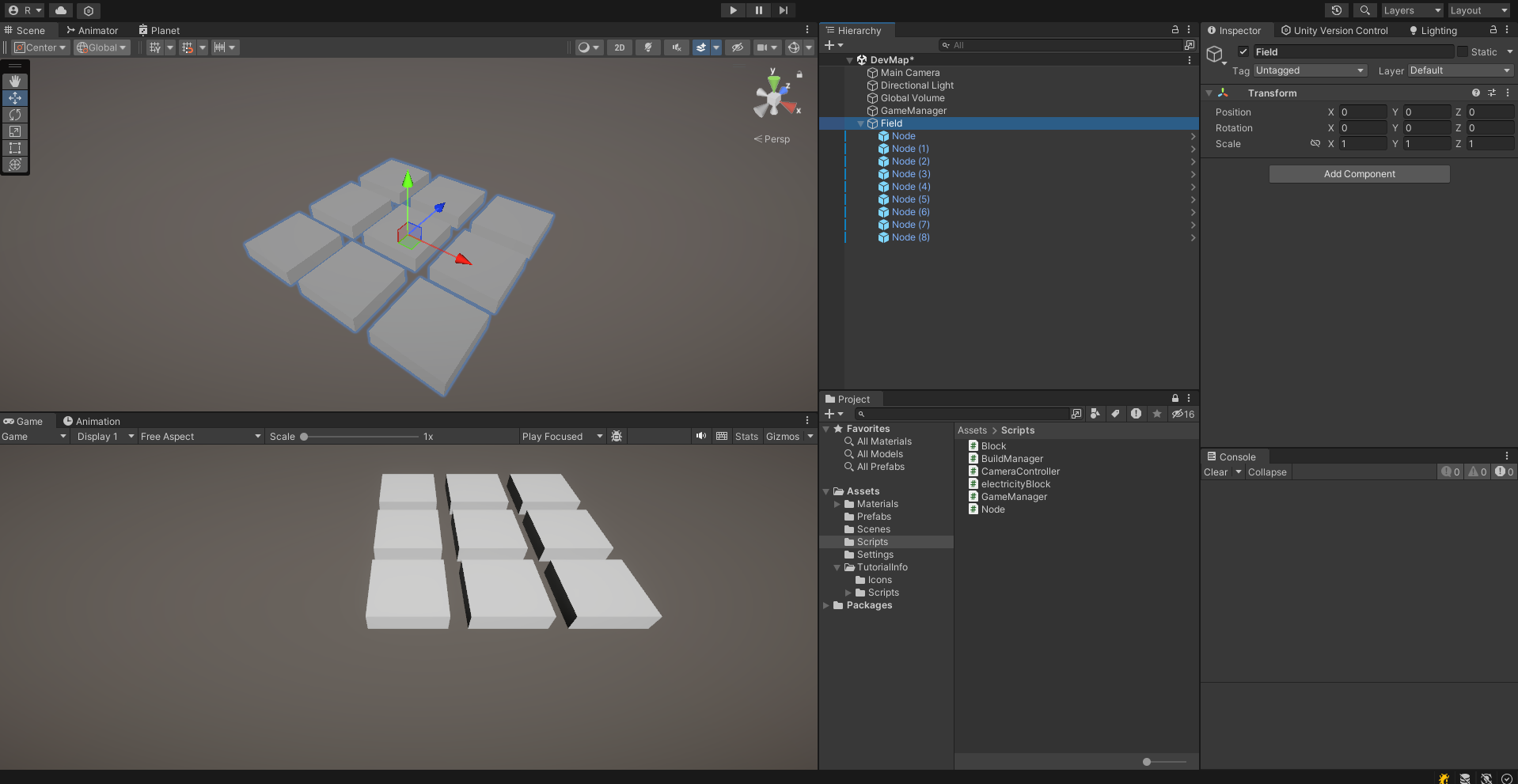 키보드를 눌러 카메라 이동을 제어해보자. Field라는 빈 오브젝트를 만들어서 해당 오브젝트에 Node들을 넣어주었다.
