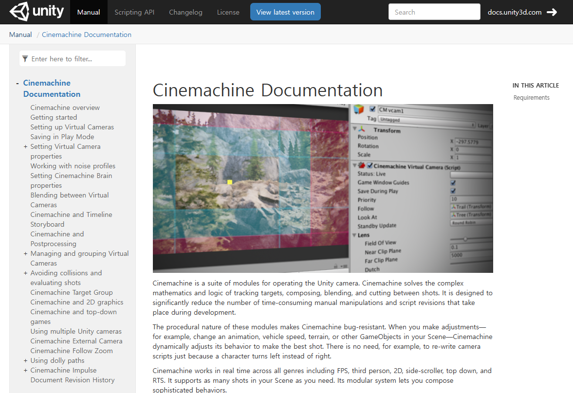 - 프로젝트에서 사용하는 FreeLook Camera에 관한 설명이 담긴 공식 문서이다.