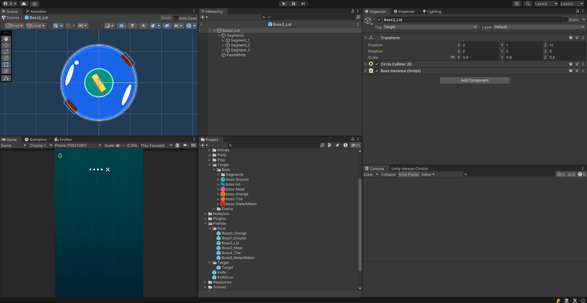 이제 보스를 똑같이 프리팹을 복사해주고 각 Segment 오브젝트의 Sprite Renderer에 원형의 스프라이트를 그대로 넣어주면?