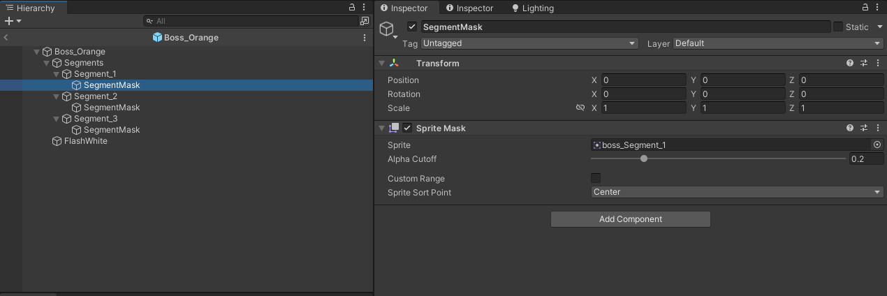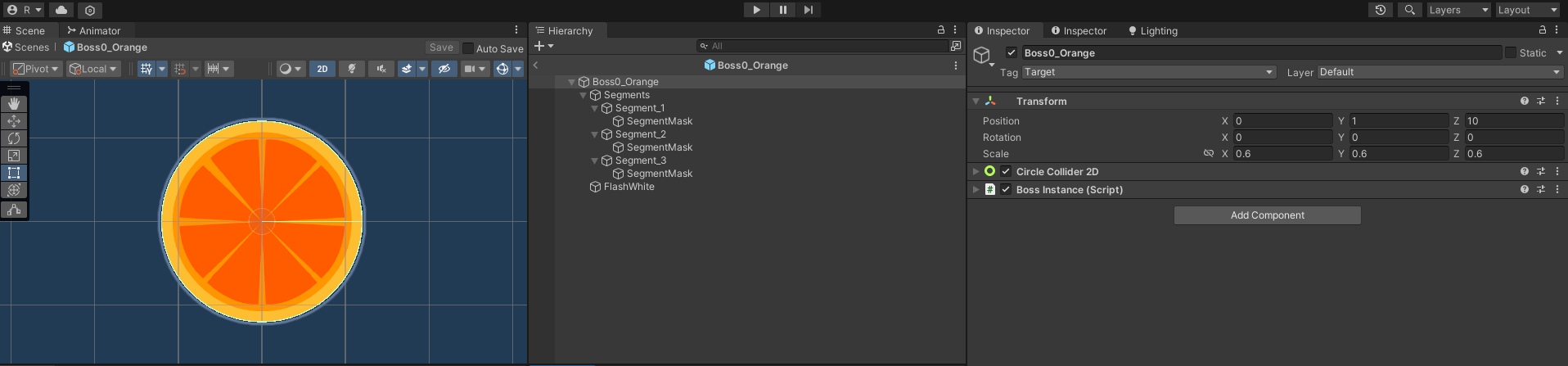 이제 보스 스프라이트를 저번 Boss Orange를 만들었을때와 동일한 방법으로 여러개 만들고 여러 패턴을 적용시켜 보스 프리팹을 여러 개 만들어보려했으나, 스프라이트 하나를 3개로 복사해서 다시 Polygon으로 바꿔서 설정해주고 하면 너무나 오랜 시간이 걸리고, 결국 스프라이트의 개수 자체도 많아지다보니 힘들거 같아서 다른 방식으로 해결했다.