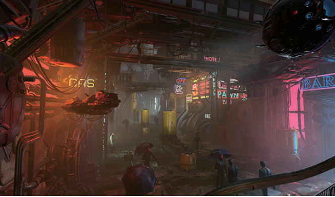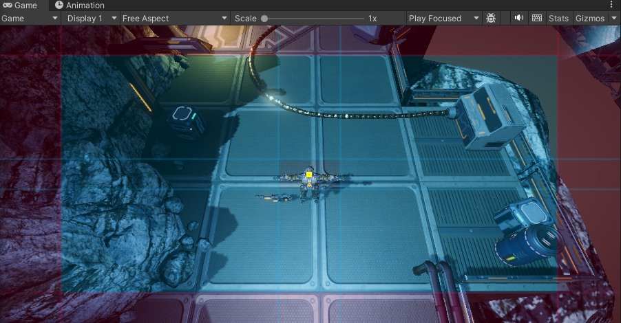 라이트 매핑이 완료된 스테이지 모델과 비네팅 효과로 인해 모서리 부분이 어둡게 표현된 것을 확인할 수 있다.