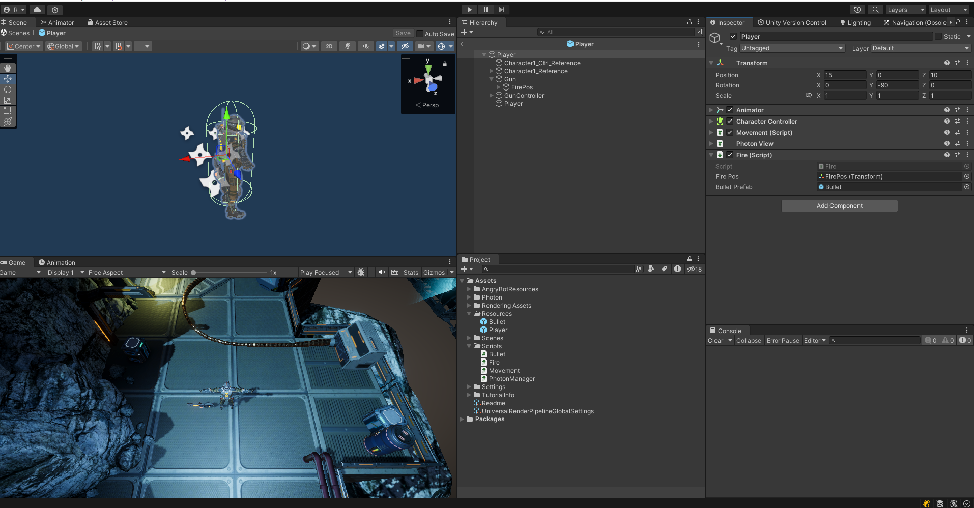 이제 Fire 스크립트를 작성한 다음 Player에 컴포넌트로 추가해준다.